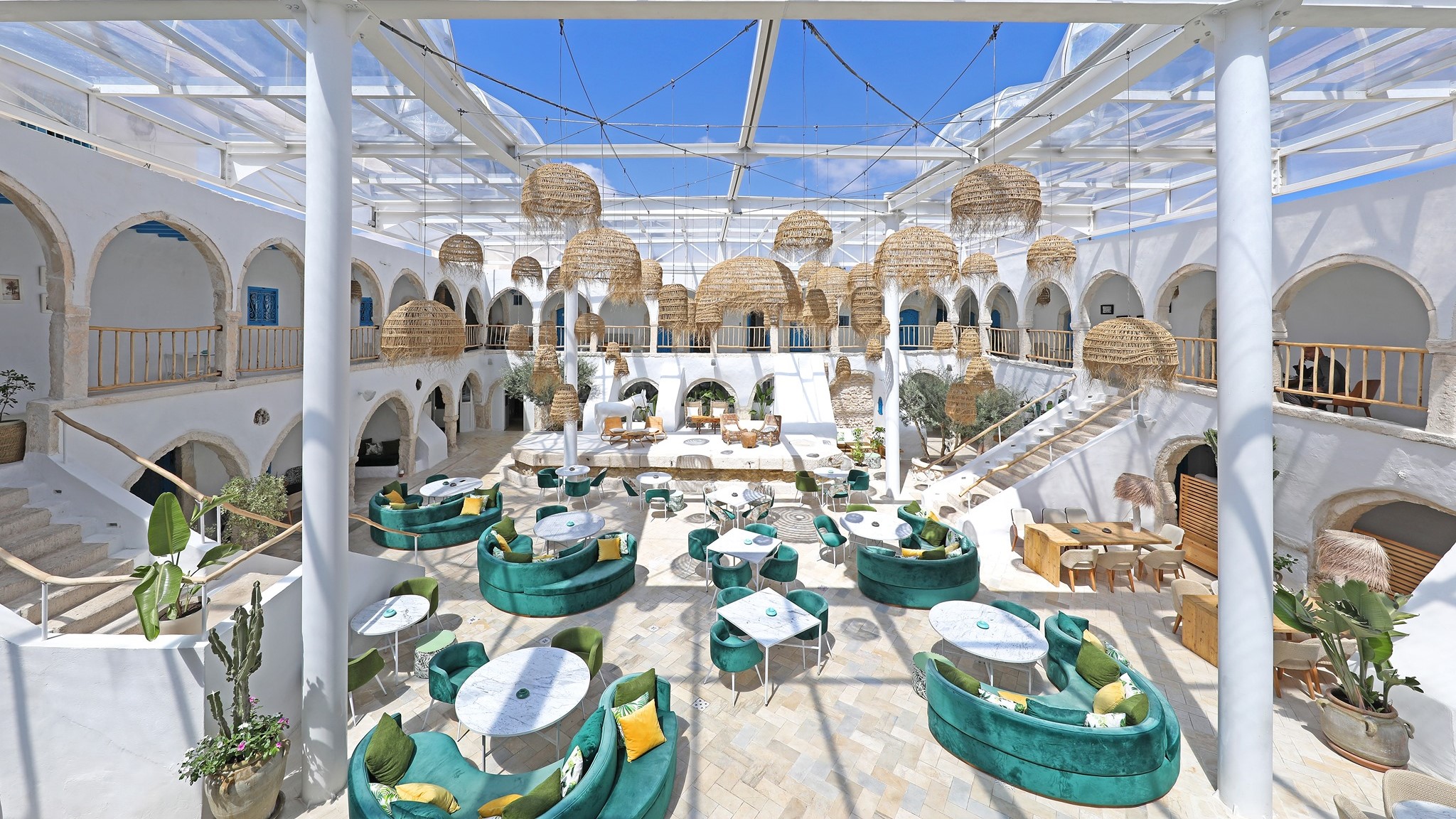 Unul se distinge însă din mulțime – El Fondouk, probabil cel mai instagramabil loc din Houmt Souk. Situat în inima medinei, El Fondouk este mai mult decât un restaurant sau o cafenea, este artă pură și vei înțelege asta din momentul în care îi treci pragul. Oricât ai încerca să te abții, te vei trezi cu gura căscată și gâtul șurub, admirând superbul mix de arhitectură modernă și tunisiană care a scos din anonimat și uitare ceea ce era acum 400 de ani un fondouk (caravanserai) magrebian.