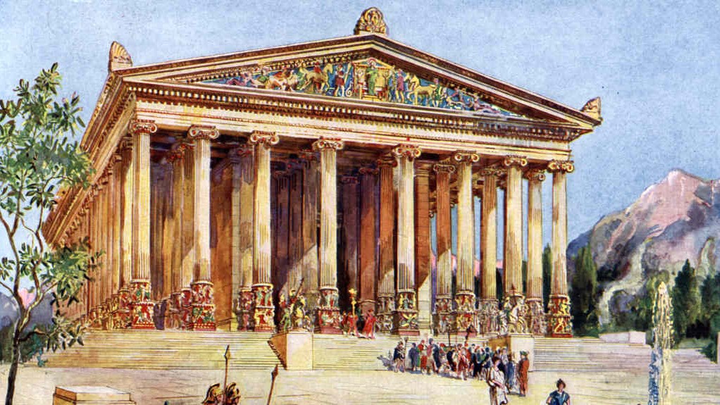 Se spune că templul era de o frumuseţe copleşitoare, cu frontoane şi coloane pictate în culori vii, iar statuile sculptate de cei mai apreciaţi sculptori ai vremii erau decorate cu aur şi argint. Templul a fost distrus de 3 ori şi de fiecare dată a fost reconstruit.